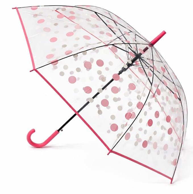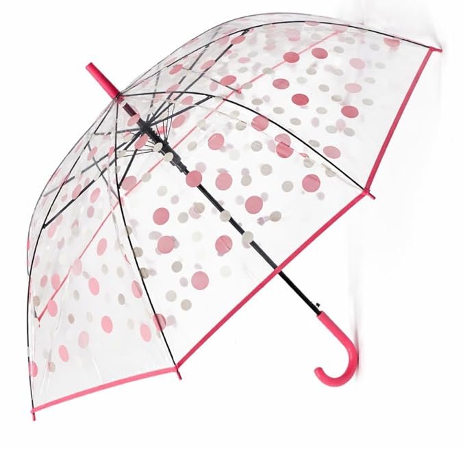 Clear Dome Kids Umbrella with Pink Handle – Transparent Polka Dot
