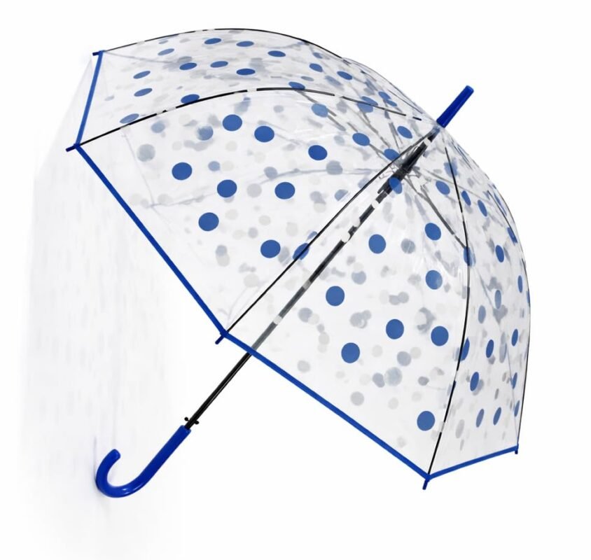 Clear Dome Kids Umbrella with Blue Handle – Transparent Polka Dot Waterproof Rain Umbrella