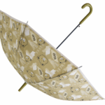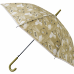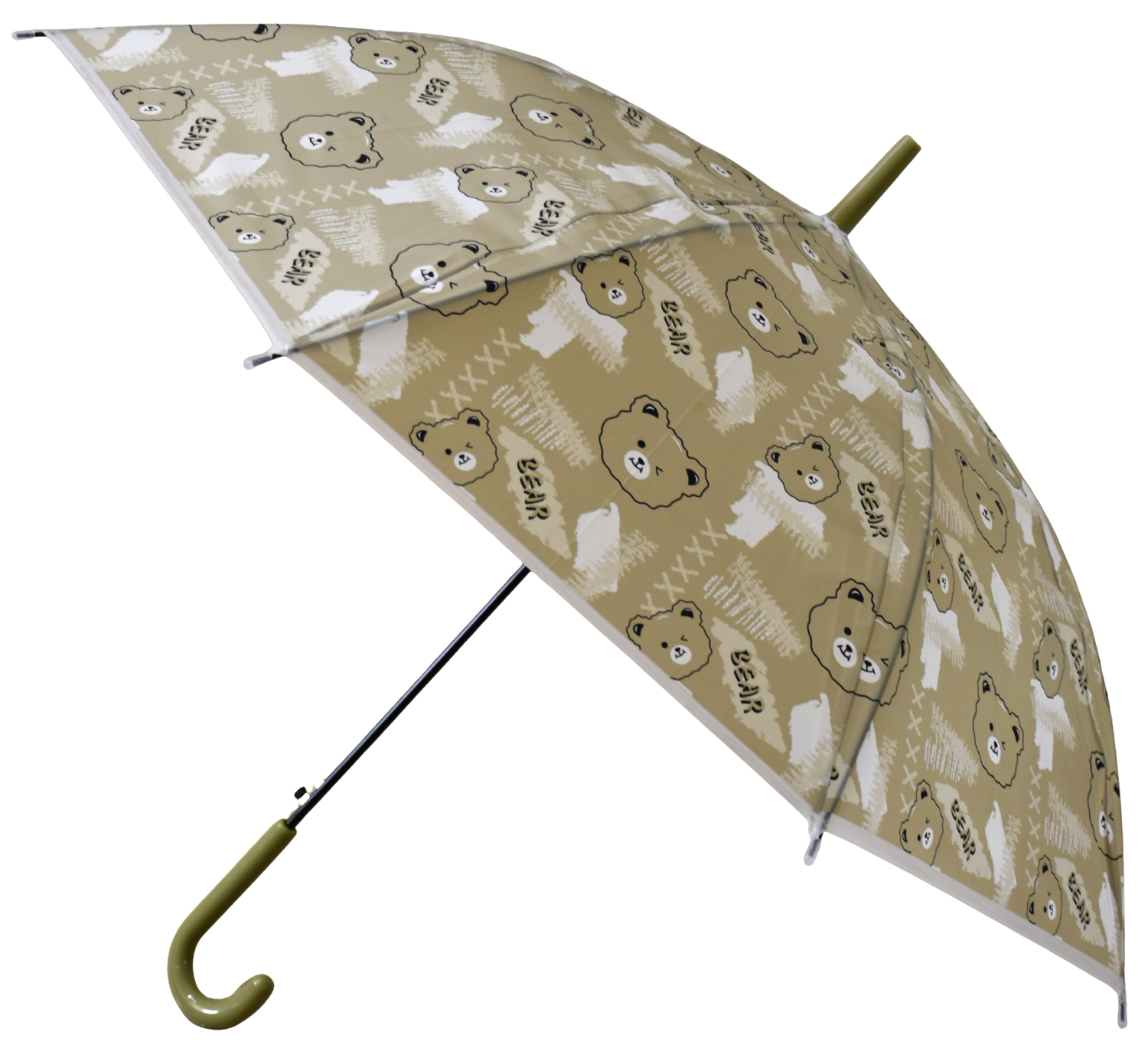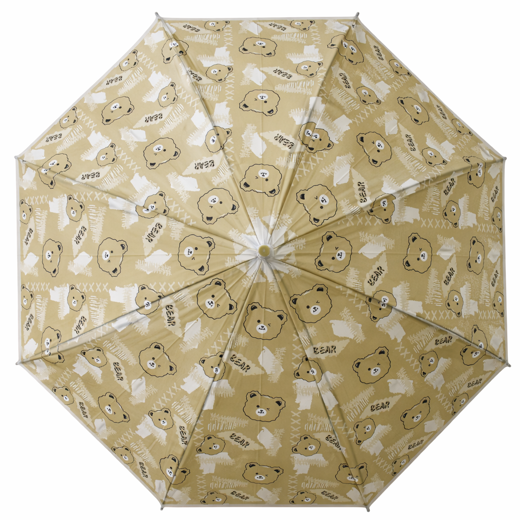 Beige Bear Print Kids PVC Umbrella with Olive Handle – Cute Cartoon Rain Umbrella for Boys & Girls