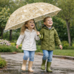 Make rainy days fun with this adorable Bear Print Kids Umbrella! Designed especially for children, this umbrella features a cute cartoon bear pattern that kids love. The lightweight build makes it easy for little hands to carry, while the sturdy frame offers reliable protection from rain and wind. Crafted with waterproof fabric, this umbrella keeps your child dry during school trips, outings, and daily use. The smooth hook handle ensures a comfortable grip, and the child-friendly design makes it safe and simple to open and close. Perfect for boys and girls, this umbrella combines style, safety, and durability—a must-have rainy-day accessory for kids.