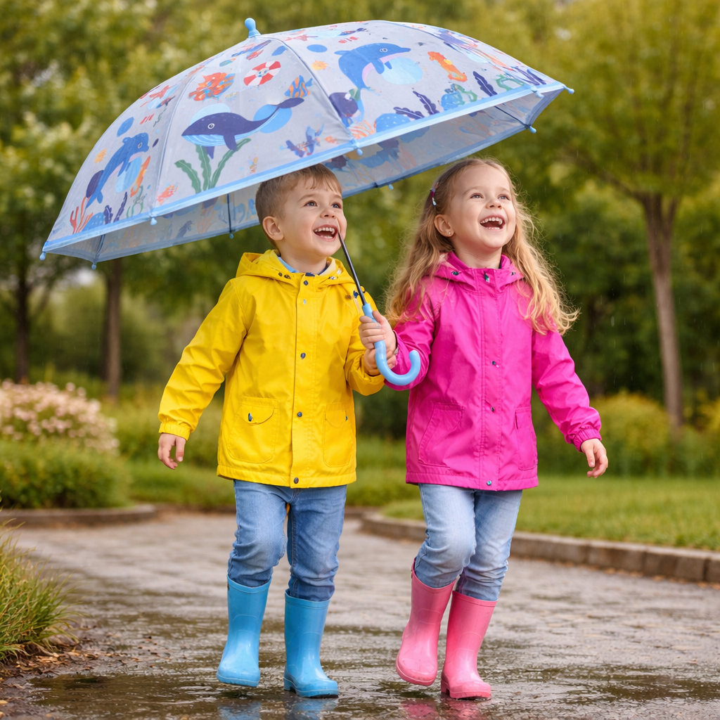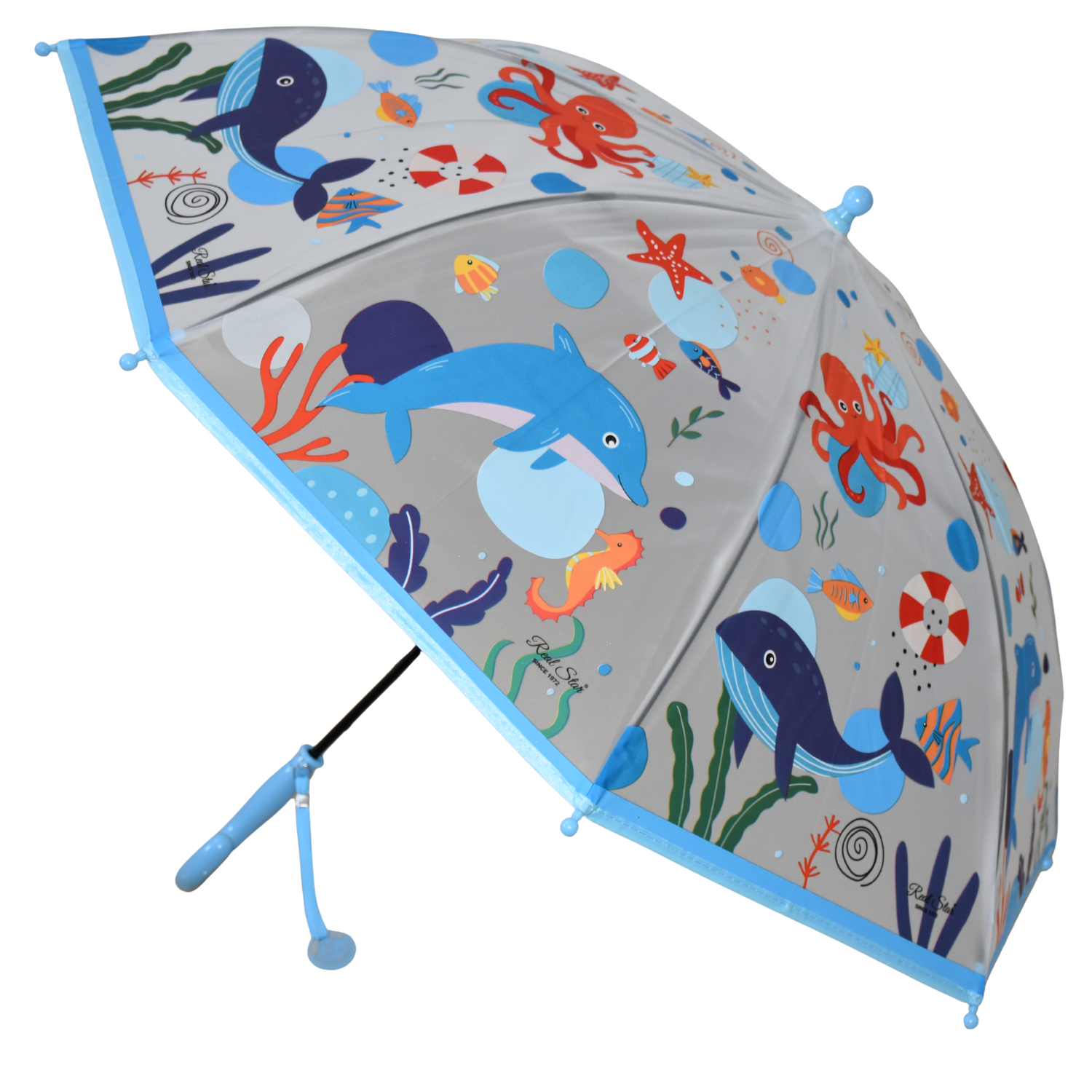 Blue Ocean Kids PVC Umbrella – Dolphin & Whale Rain Umbrella for Boys & Girls