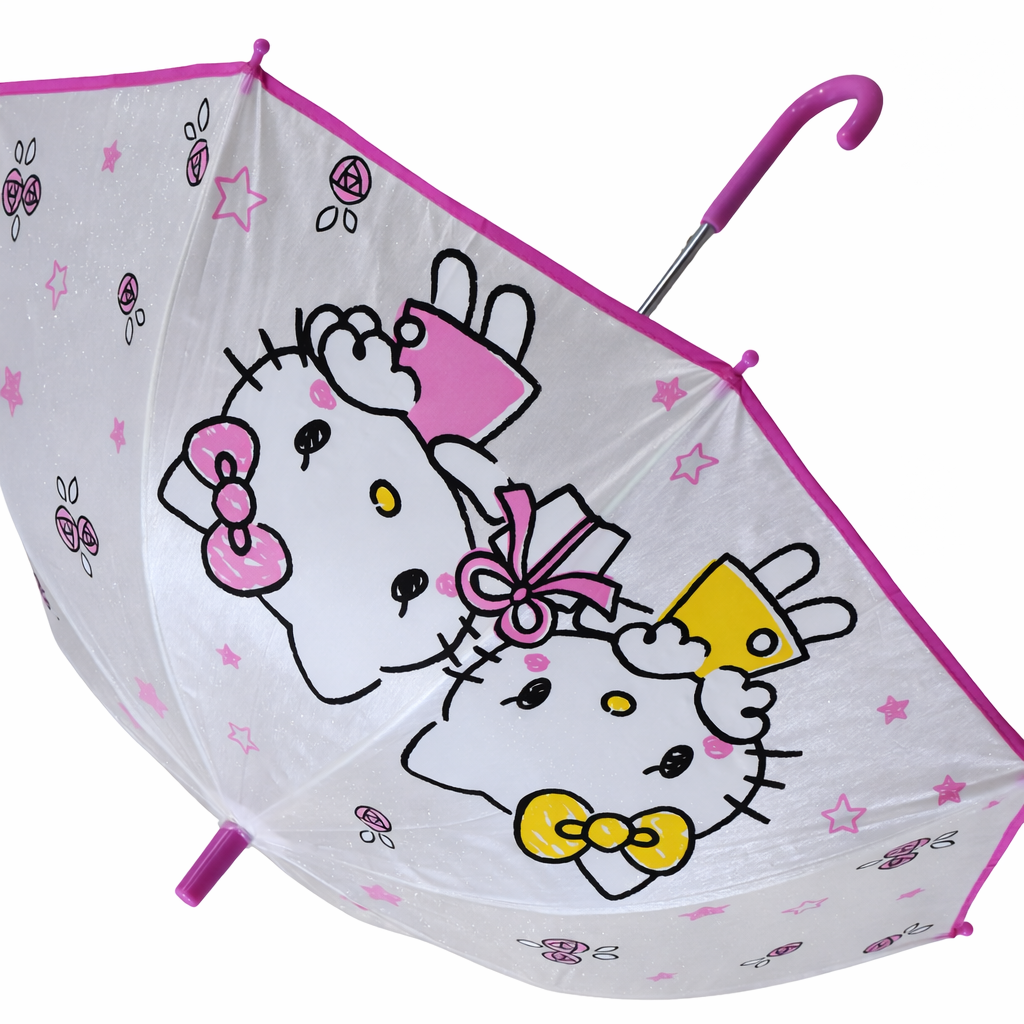 Make rainy days fun with this adorable Hello Kitty kids umbrella! Designed with a clear dome canopy, this umbrella helps children see where they’re going while staying fully protected from rain and wind. Featuring cute Hello Kitty characters, stars, and bows, it’s the perfect rainy-day accessory for school, travel, or outdoor play. The lightweight frame and easy-grip hook handle are specially designed for little hands, making it comfortable and safe for kids to use on their own. Durable materials ensure long-lasting performance, while the transparent design adds both style and visibility. Perfect for girls who love Hello Kitty, this umbrella also makes a great gift for birthdays, holidays, or back-to-school season.