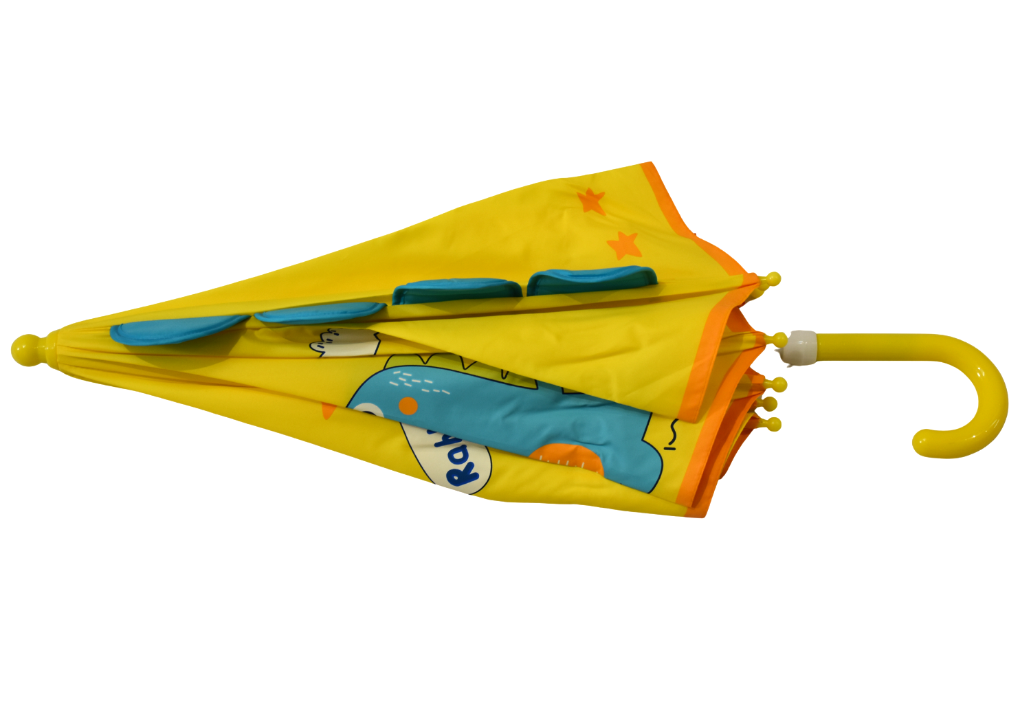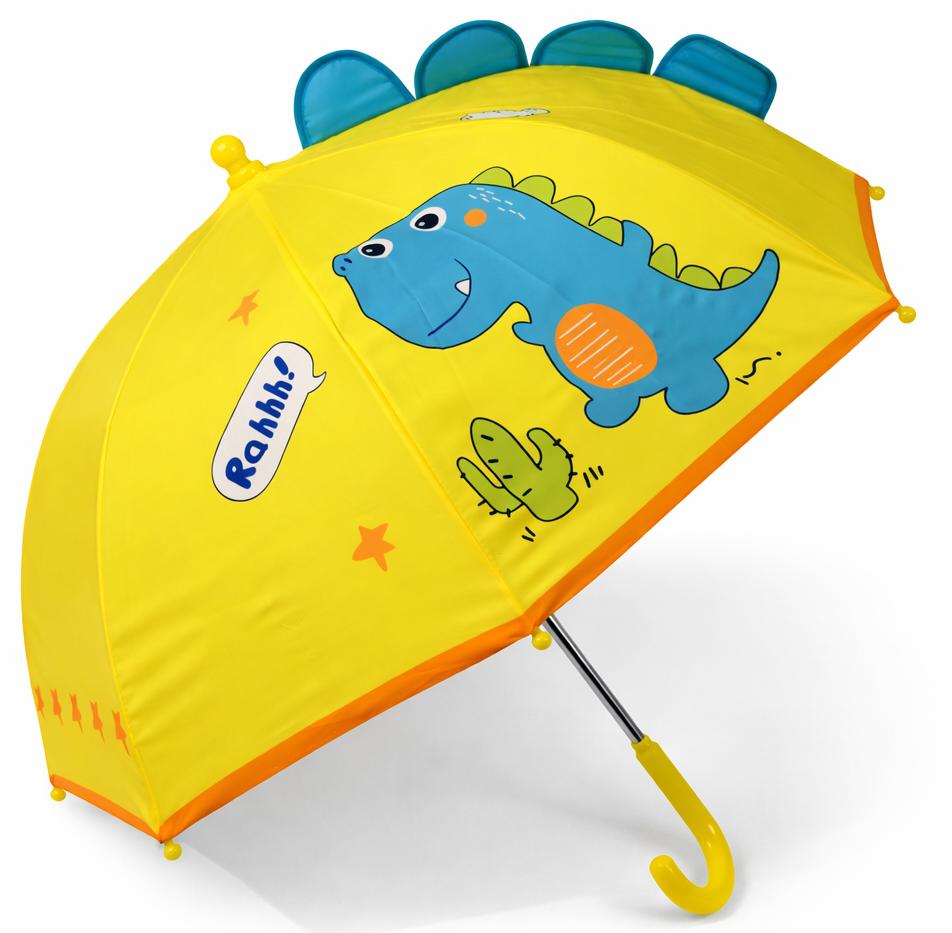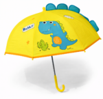 Kids 3D Dinosaur Yellow Umbrella – with Curved Handle
