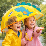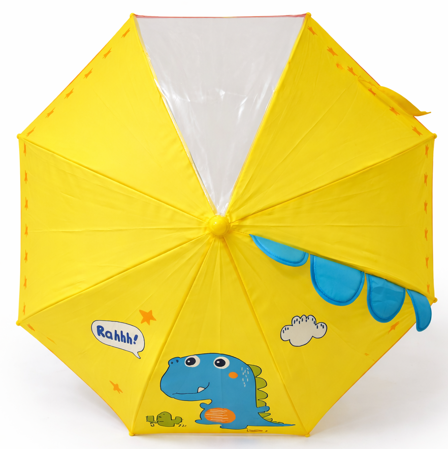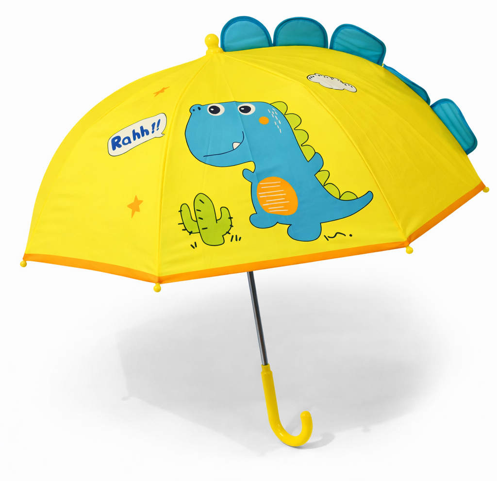 Turn rainy days into an adventure with this 3D Dinosaur Kids Umbrella ☔🦕 Designed especially for young children, this umbrella features a cute cartoon dinosaur with pop-up spikes that adds fun and excitement to every rain walk. The bright yellow canopy, playful prints, and friendly dinosaur face capture kids’ attention, while the transparent window panel helps them see clearly and walk safely. Built with rounded tips and a smooth manual open mechanism, it ensures safety for little hands. Lightweight yet durable, this umbrella is perfect for school, outdoor play, or travel. A wonderful mix of fun, safety, and functionality, it makes an excellent gift for kids.