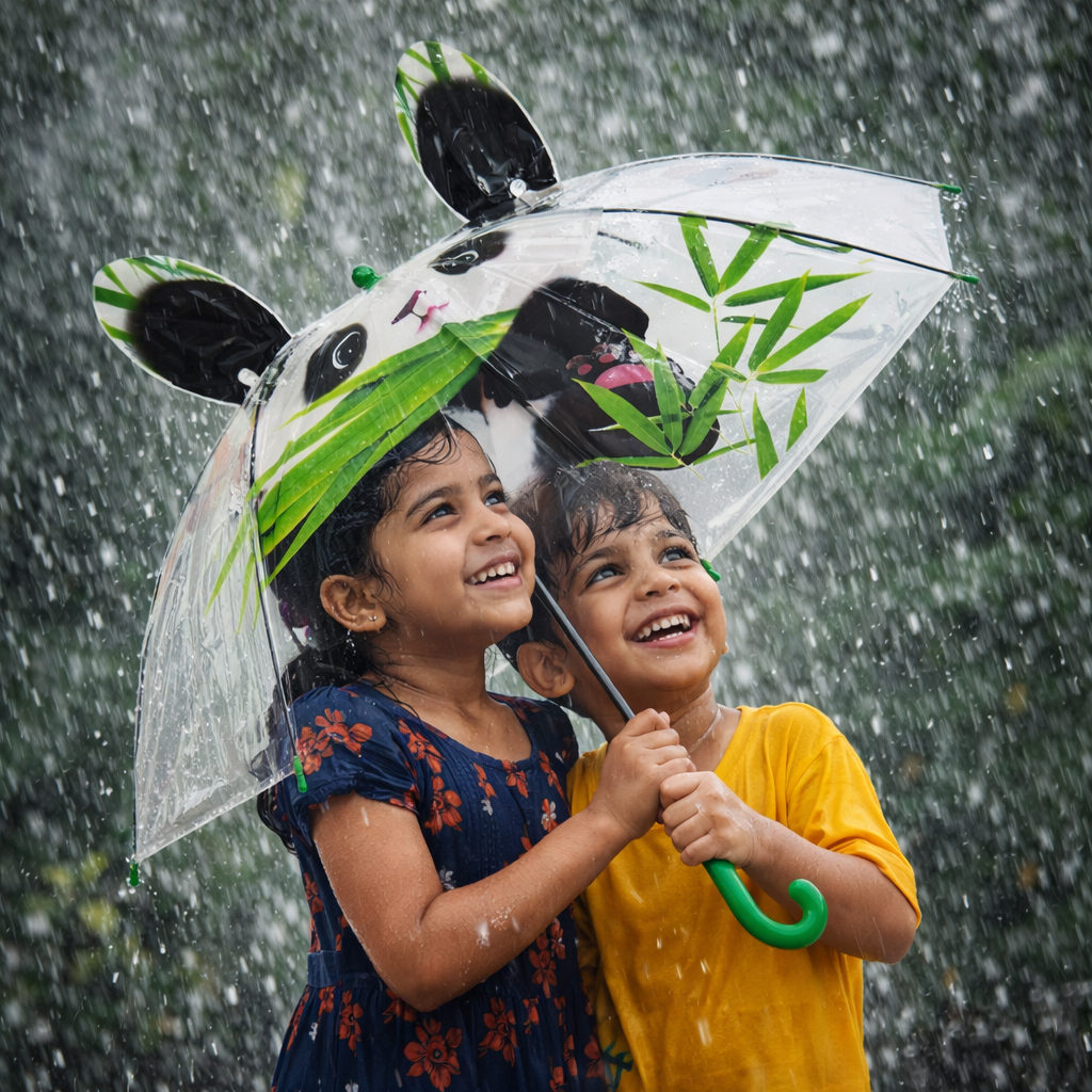 Make rainy days fun and exciting with this 3D Panda Transparent Kids Umbrella ☔🐼 Designed especially for young children, this umbrella features a cute panda face with pop-up ears that adds charm and joy to every outing. The clear dome canopy provides excellent visibility, helping kids walk safely in rain while parents enjoy peace of mind. Built with rounded safety tips, sturdy ribs, and a smooth manual open system, it ensures both safety and durability. Lightweight yet strong, this panda umbrella is easy for kids to carry and use on their own—perfect for school, playtime, and outdoor adventures. A wonderful mix of fun design, safety, and practicality.