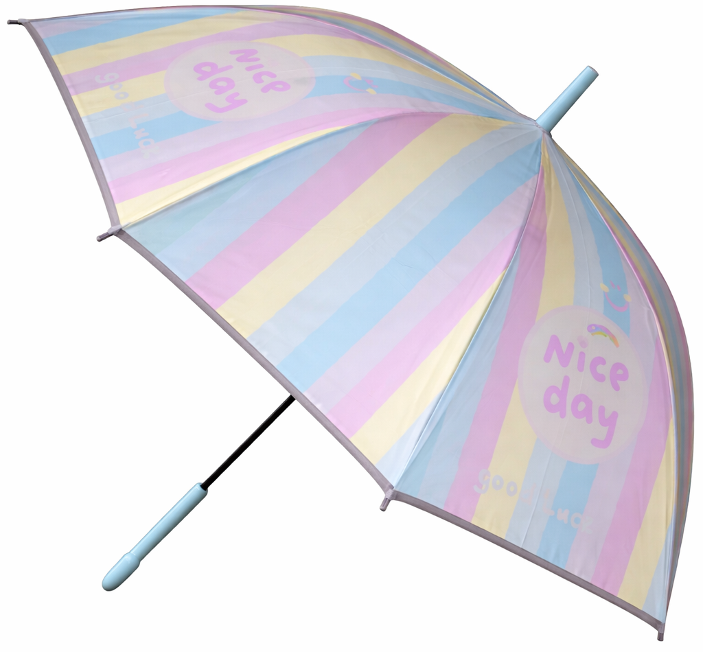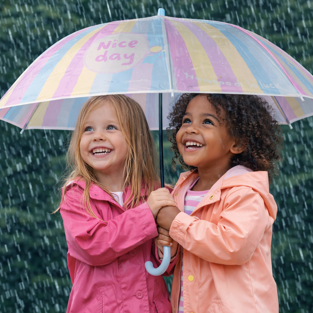 Turn rainy days into happy days with this charming kids transparent umbrella, designed with soft pastel rainbow stripes and a cheerful “Nice Day” message that kids adore. The clear canopy allows children to see clearly while walking, helping them stay safe and confident in the rain. Made with a lightweight yet sturdy frame, this umbrella is easy for kids to carry and resistant to windy conditions. Smooth edges and rounded tips make it a parent-approved, child-friendly choice for school, travel, and everyday use. Cute, practical, and safe—this umbrella is the perfect rainy-day companion for boys and girls.