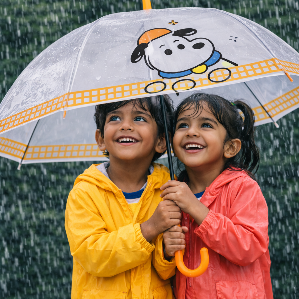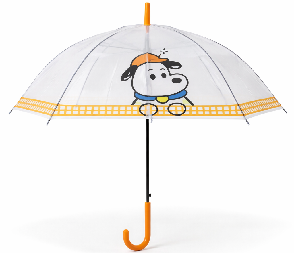 Make rainy days more fun with this adorable transparent kids umbrella featuring a cute cartoon dog design. The clear canopy provides excellent visibility while keeping children safely protected from rain. Designed with a sturdy wind-resistant frame and a child-friendly J-handle, this umbrella is lightweight, durable, and easy for kids to use on their own. Its fun design encourages children to enjoy walking to school or playing outside even on rainy days. Perfect for boys and girls, this umbrella combines safety, durability, and playful style for everyday use.