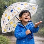 Make rainy days exciting with this adorable Kids Transparent Dinosaur Umbrella. Designed with a clear dome canopy for better visibility and safety, this umbrella allows children to walk confidently in rain while staying protected. The colorful cartoon dinosaur print adds a playful touch that kids absolutely love. Built with a sturdy metal frame and durable ribs, this umbrella is wind-resistant yet lightweight, making it perfect for everyday school use. The comfortable blue J-shaped handle ensures a secure grip for small hands. Ideal for boys and girls aged 3 to 10 years, this dinosaur rain umbrella is both functional and fun — a must-have monsoon essential for kids.