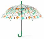 Kids Transparent Dome Umbrella with Dinosaur Print Green Handle
