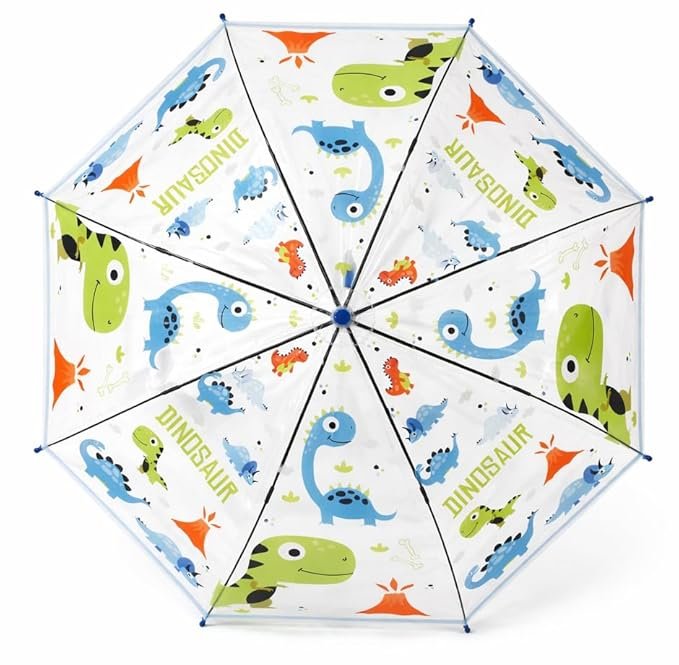 Kids Transparent Dome Umbrella with Dinosaur Print