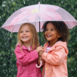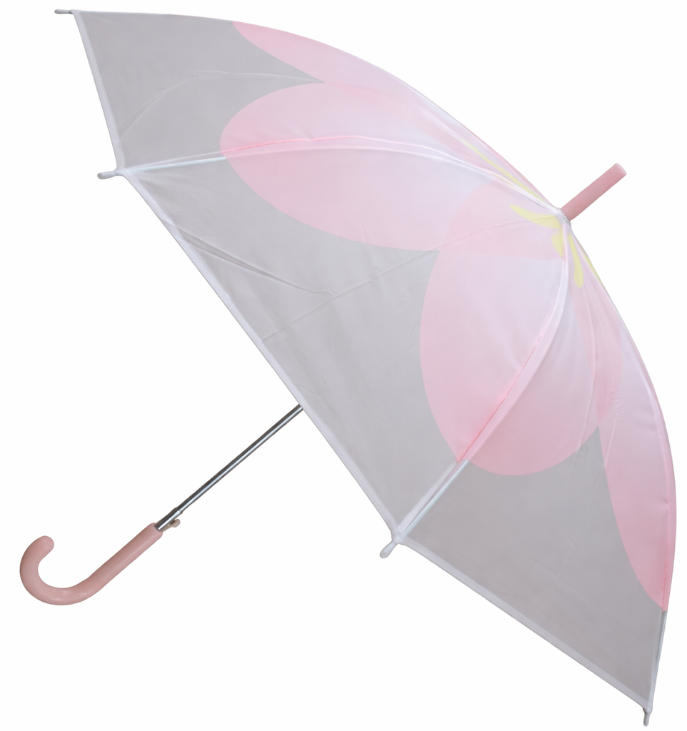 Kids Transparent Pink Panel Umbrella – Lightweight Children’s Rain Umbrella with Curved Handle