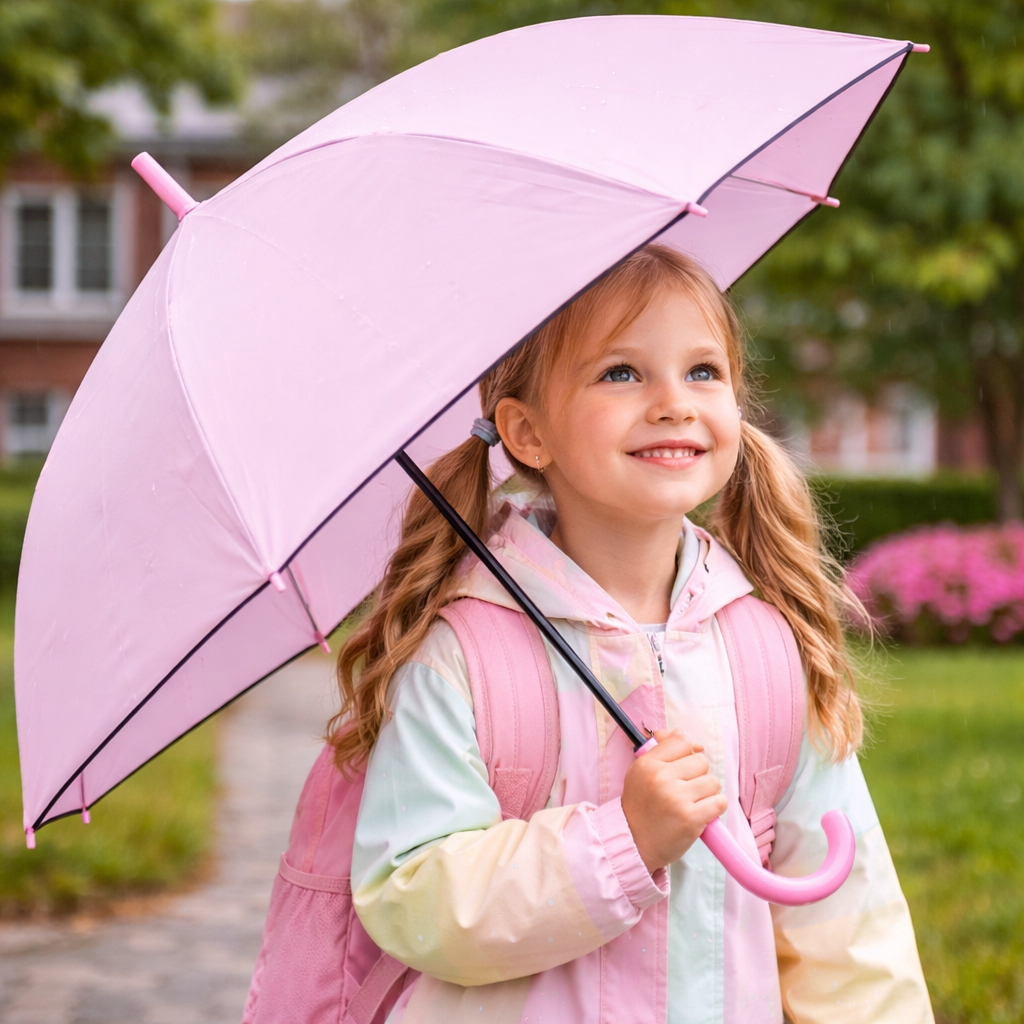Make rainy days bright and cheerful with this Pink kids umbrella, designed especially for young children. The vibrant pink canopy adds a fun and stylish touch, while the lightweight structure makes it easy for kids to carry on their own. Built with a durable wind-resistant frame and safe rounded tips, this umbrella offers reliable rain protection without compromising safety. The comfortable curved handle fits perfectly in small hands, making it ideal for school, outdoor walks, travel, and everyday use. A perfect blend of style, safety, and durability, this umbrella is a must-have rainy day essential for girls.