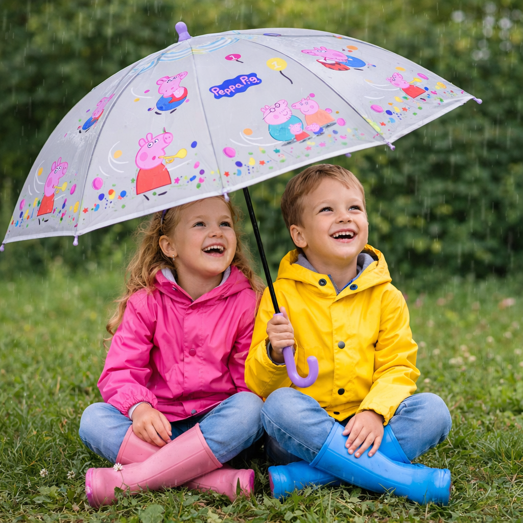 Add fun and cuteness to rainy days with this Cartoon Pig Translucent Umbrella designed specially for young children. The semi-transparent canopy gives kids better visibility while the adorable pig print makes it exciting to carry. Made with a lightweight frame, rounded safety tips, and an easy-grip handle, this umbrella is perfect for toddlers, girls, and boys. Its child-friendly design ensures smooth opening and closing, making it ideal for school, travel, monsoon season, and daily use. Give your little one a joyful and safe rain experience with this cute cartoon umbrella for kids.