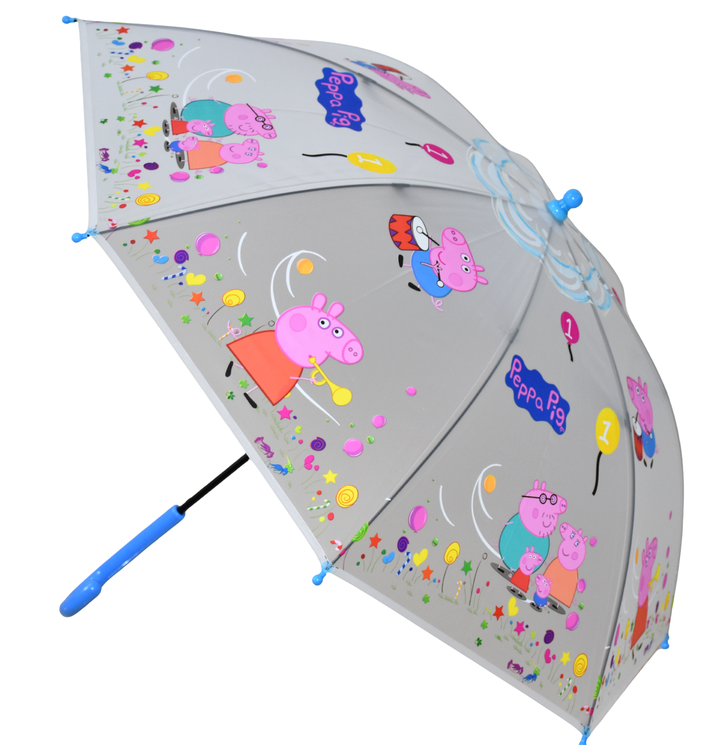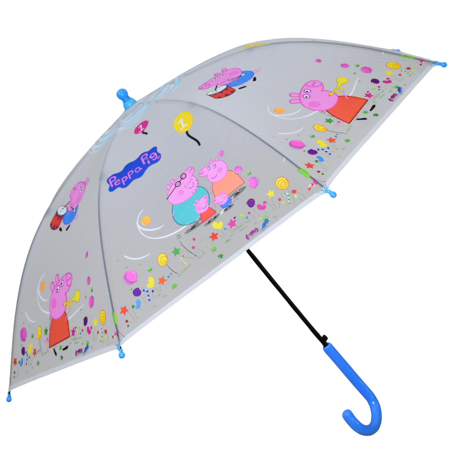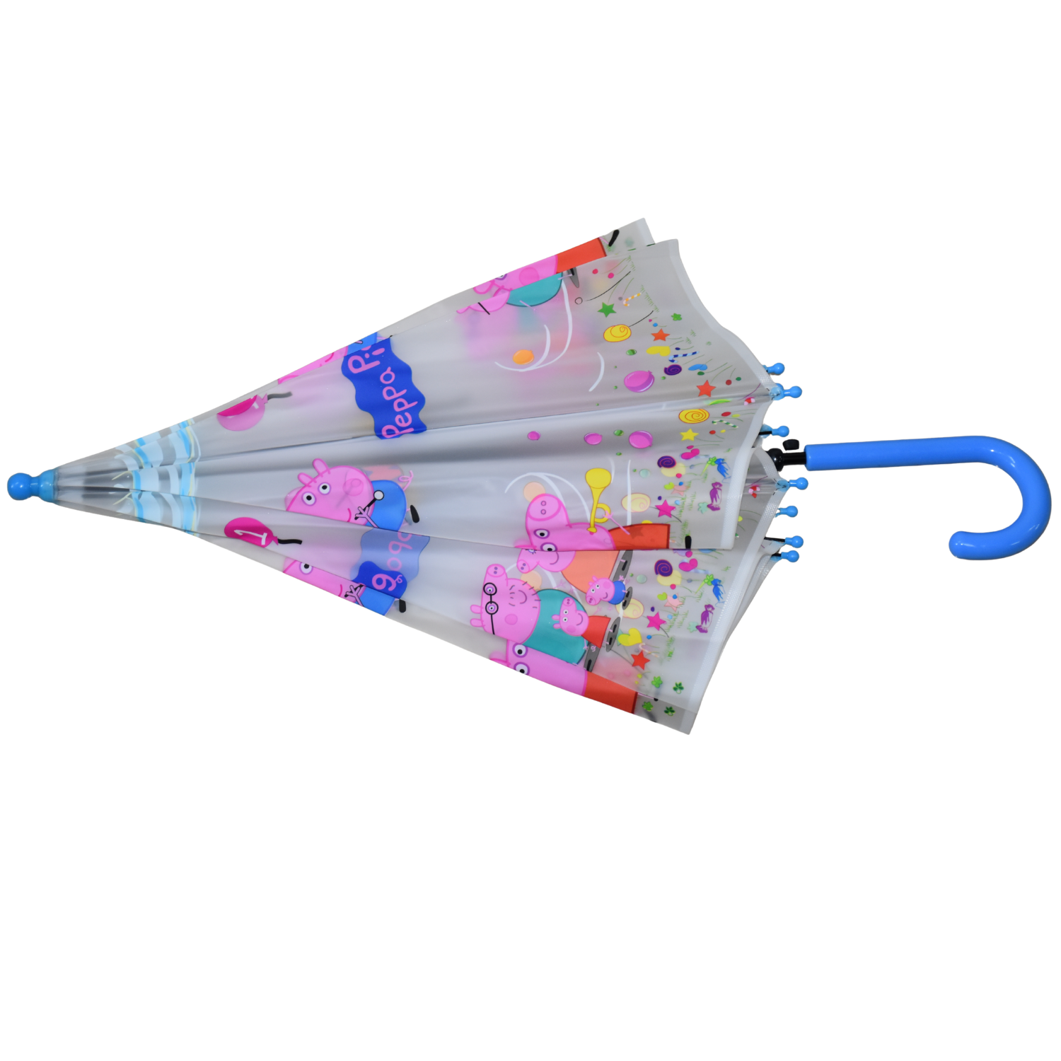 Peppa Pig Kids Translucent PVC Umbrella with Blue Handle – Cartoon Rain Umbrella for Boys & Girls