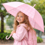 Make rainy days something your child looks forward to! This kids umbrella combines a charming pastel checkered design with practical rain protection. Crafted with a lightweight yet durable frame, it’s easy for little hands to carry while offering reliable coverage from rain and wind. The scalloped edge design adds an extra touch of cuteness, while the safe rounded tips and comfortable J handle ensure worry-free use. Perfect for school days, outdoor walks, and rainy adventures, this umbrella is a must-have accessory for every child. Available in soft pastel colors that kids love—because rain gear should be fun too!