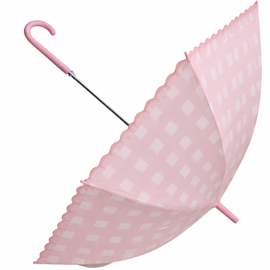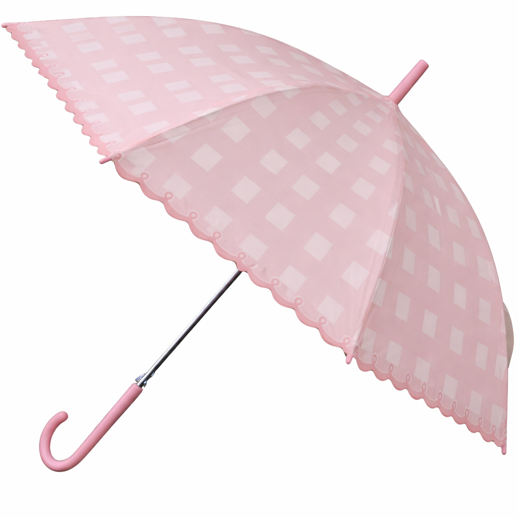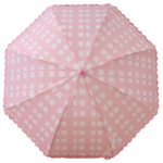 Pink Checkered Kids Umbrella with Scalloped Edge – Cute Rain Umbrella for Girls