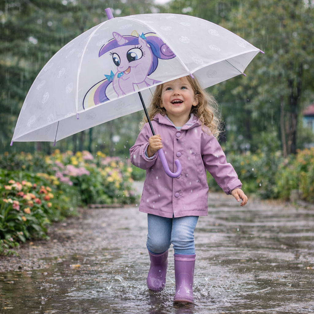 Make rainy days fun and colorful with this adorable Cartoon Pony Kids Umbrella! Designed especially for children, this lightweight and durable umbrella features a cute pony print that girls love. The waterproof canopy offers great rain protection while the smooth hook handle is easy for little hands to hold. Perfect for school, travel, and everyday use, this umbrella combines safety, style, and durability. A lovely gift choice for birthdays, return gifts, or monsoon essentials for kids.